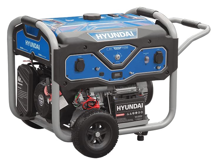 HYUNDAI Benzin Generator BG55053, Stromerzeuger mit 15PS Motor und 5.5kW max. Leistung, Handstart und E-Start, Notstromaggregat für Baustellen mit 2 x 230V Anschlüssen, Stromgenerator, Stromaggregat